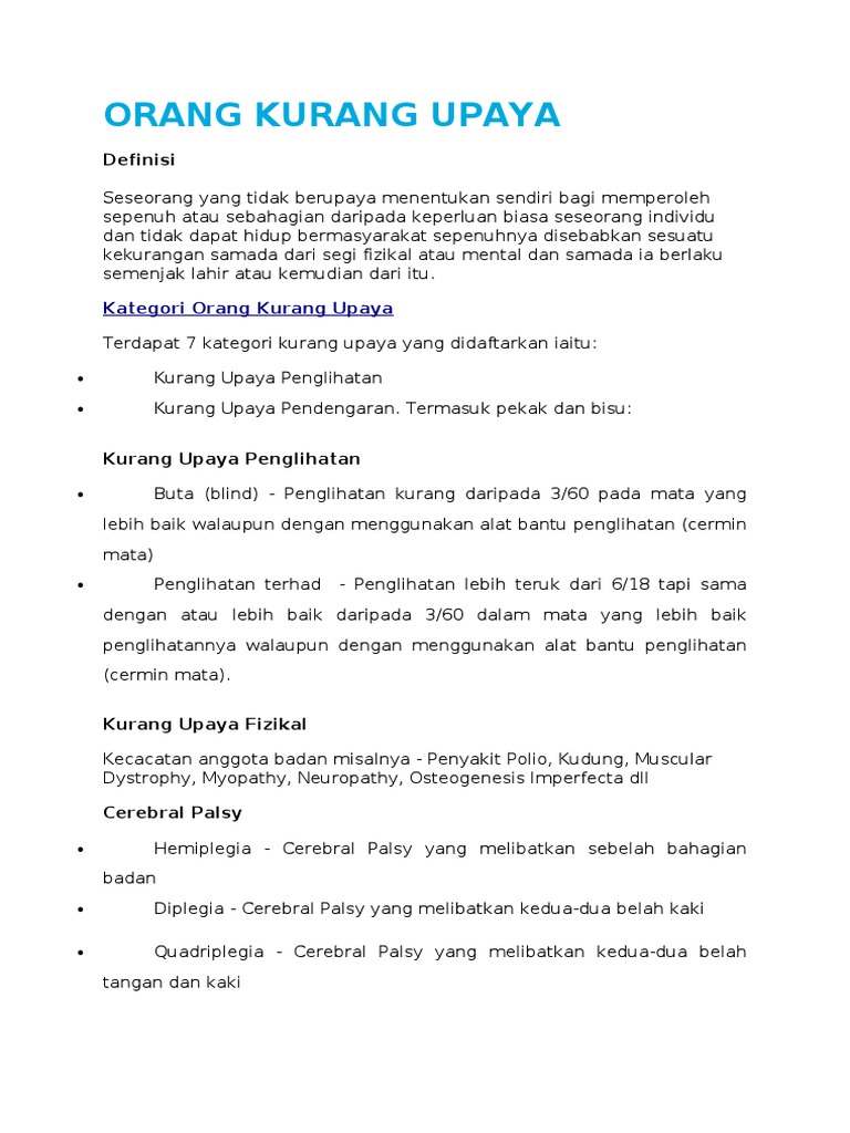 Definisi orang kurang upaya menurut.
